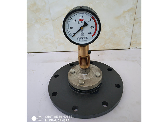 隔膜壓力表的耐蝕性可通過合適的選擇與測量介質接觸部分的膜片,隔離器及密封墊圈的材料來保證。